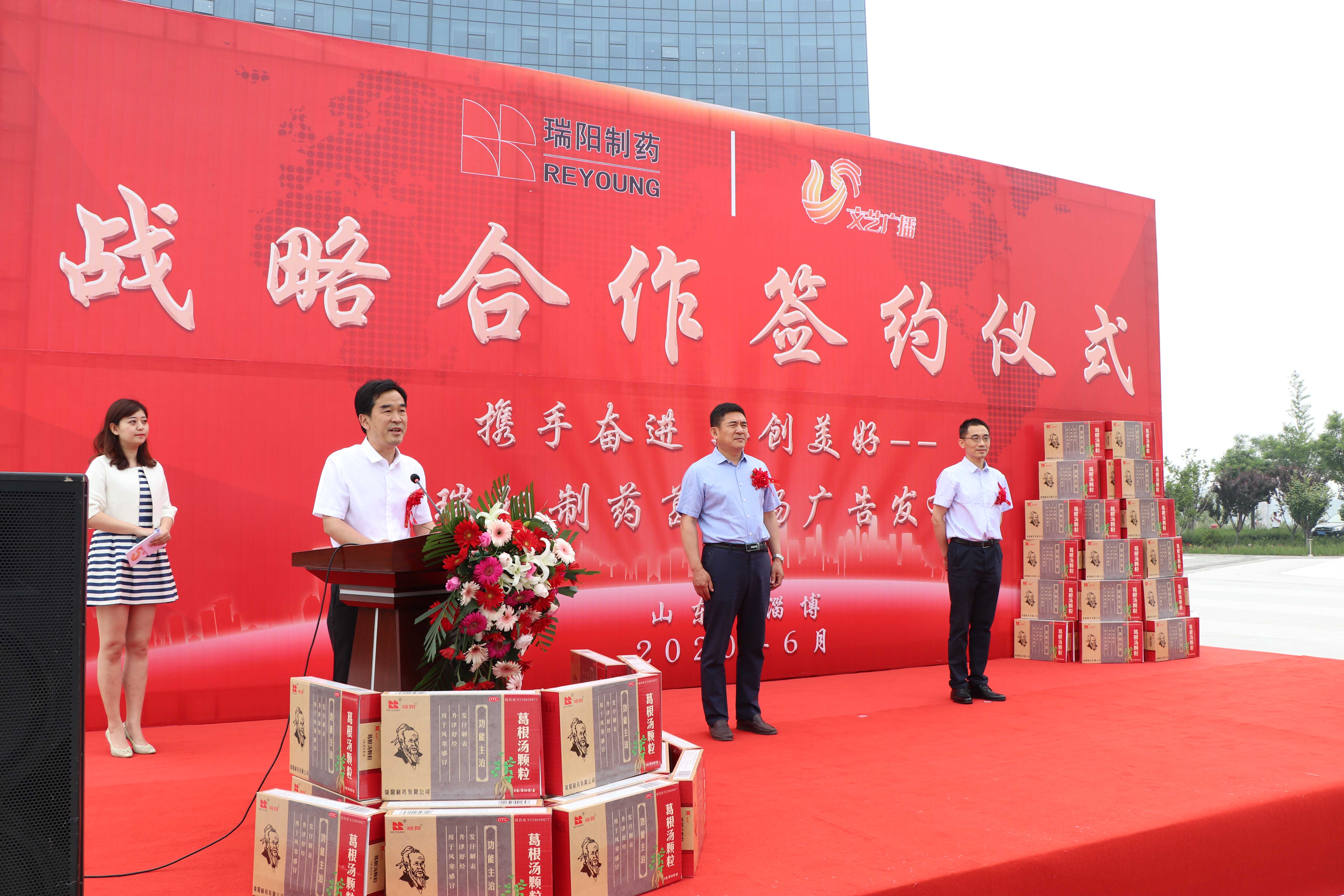 近日,公司与山东文艺广播频道战略合作暨bwin必赢电子唯一官网产品“葛根汤颗粒”线上发布启动仪式举行。山东广播电视台文艺广播频道总监孙彦杰,公司董事长、总裁苗得足,副总裁杨立峰参加了启动仪式。本次活动通过山东文艺广播、山东交通广播、山东广播电视台官方音视频直播平台“51听”APP同步进行了音视频直播。